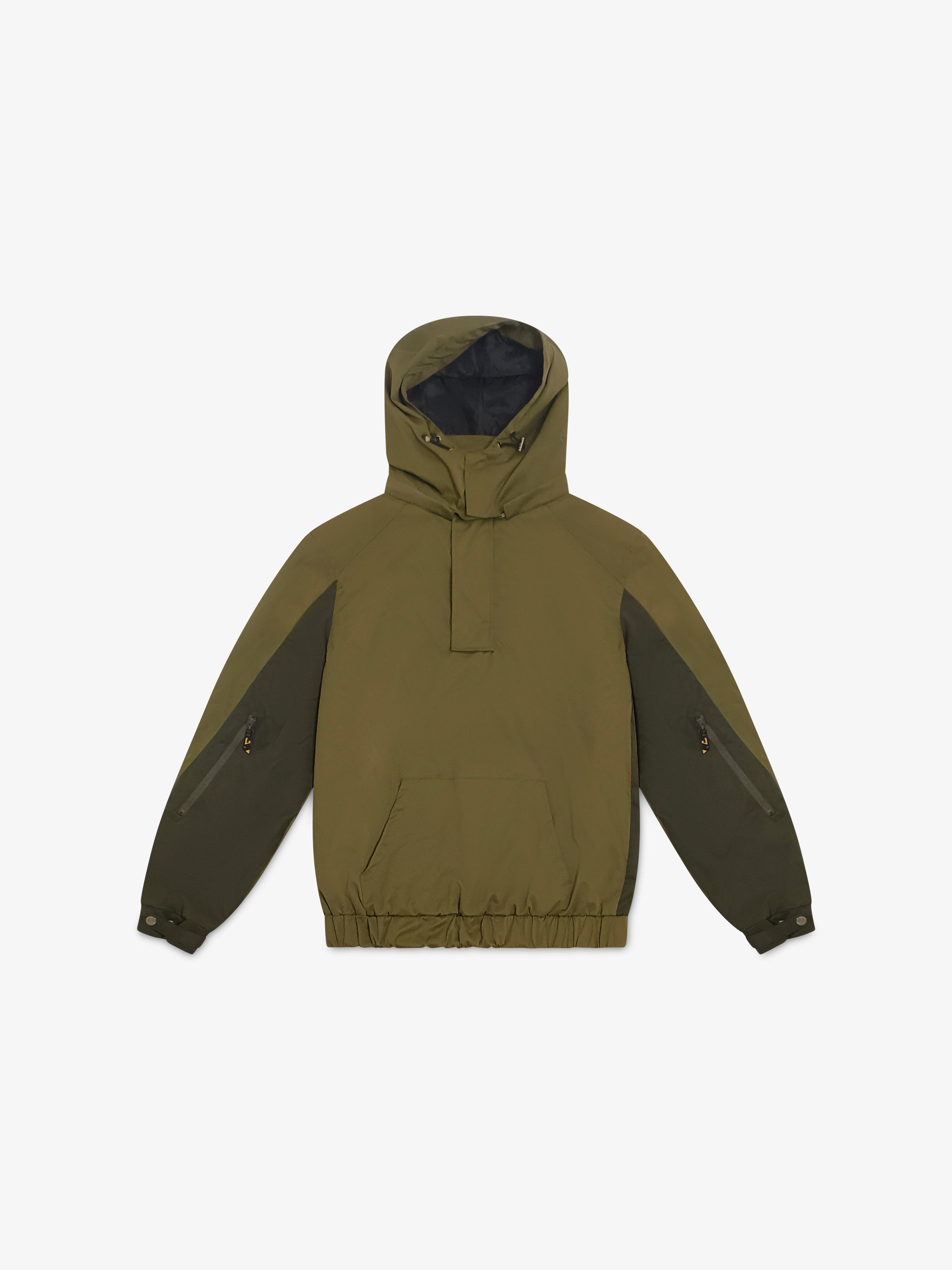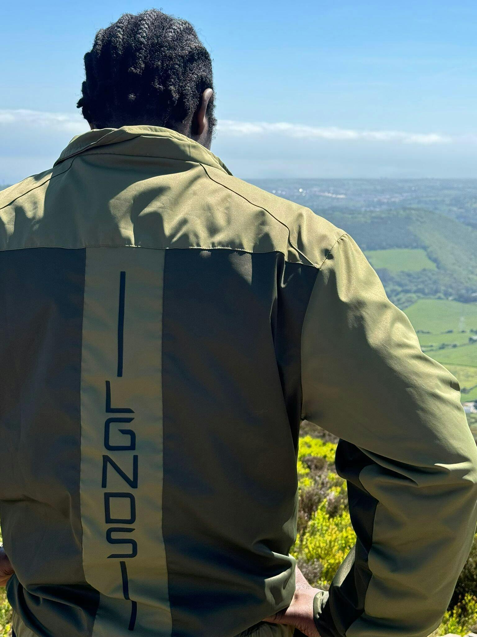 Guard your style with the Celestial Guard, a key piece from the Jade Code Collection designed for dynamic urban exploration. Constructed from durable polyester with a water-resistant coating, its refined two-tone palette of olive and deep forest green creates a cohesive yet striking look. The structured silhouette is complemented by a bold, vertically integrated LGNDS graphic on the back, resembling a circuit board or data stream – a signature mark of our subtle futuristic ethos. Functional and meticulously constructed, this windbreaker is your shield against the ordinary, promising both protection and unparalleled presence within the Jade Code.